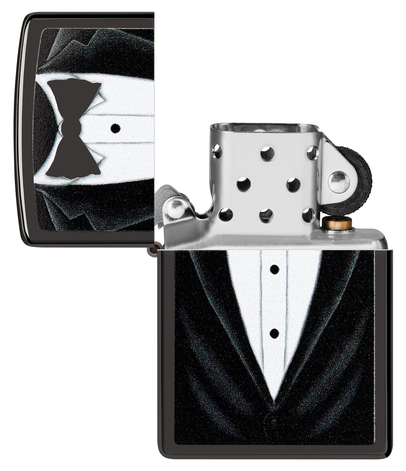 Celebrate your favorite groom with this handsome High Polish Black lighter. The perfect gift for a wedding, engagement or anniversary, the lighter features a Color Image design depicting a classic tuxedo for a timeless keepsake. Comes packaged in a gift box. For optimal performance, fill with Zippo lighter fuel.
