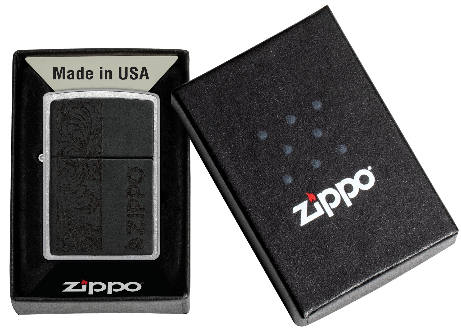 - Genuine Zippo windproof lighter with distinctive Zippo "click"